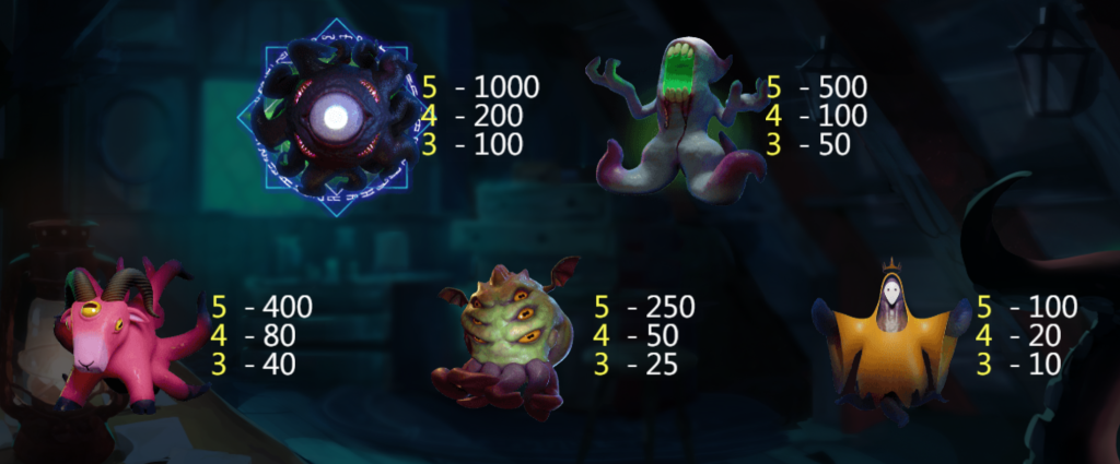紅色的邪羊象徵著混沌的降臨,獲得五個時將獲得400倍的賠付,而多眼的詭異觸手生物則以250倍的獎勵緊隨其後。至於神秘的披風幽靈,雖然在恐懼感上稍顯不足,但也能帶來100倍的回報。