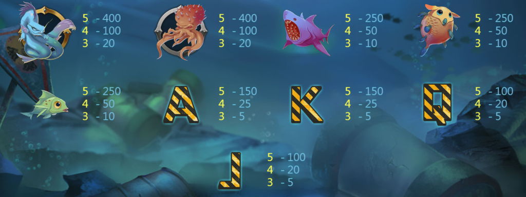 遊戲採用五軸三排的設計,並結合多種獨特的符號,如變異的狂暴食人魚、發光的深海怪魚,以及核能警示符號等,這些符號不僅造型獨特,還擁有不同的賠付價值。其中,最具價值的符號無疑是兇猛的紫色食人魚,當玩家成功連線時,將可獲得高額獎勵,而神秘的核能圖案則有可能觸發免費旋轉模式,進一步提升獲獎機會。