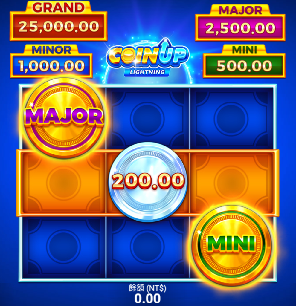 《金幣狂潮-雷霆》是一款充滿刺激與高額彩金機會的BNG電子遊戲,遊戲畫面以閃電藍色為主調,搭配金幣閃耀的視覺特效,營造出強烈的財富感。畫面中,每個金幣圖案都蘊藏著驚人的獎勵,從基本金額到不同等級的彩金,包括GRAND、MAJOR、MINOR、MINI,讓玩家有機會一次抱走巨額獎金。