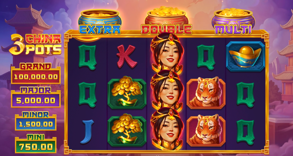 遊戲最引人注目的便是畫面頂部的三個金色寶盆它們分別代表著不同的獎勵機制,每當玩家成功觸發其中一個寶盆時,都有機會獲得額外獎勵、雙倍獎金或倍數加乘的驚喜。我認為這樣的設計大大提升了遊戲的變化性與趣味性,讓每一次旋轉都充滿期待。