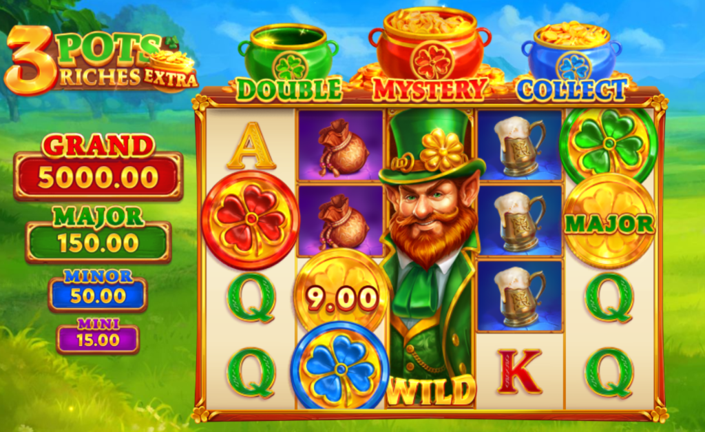 《3鍋富翁強化》是一款以愛爾蘭幸運文化為主題的電子遊戲,畫面充滿金幣、三葉草、啤酒與神秘寶袋,讓玩家彷彿置身於金光閃閃的財富之地。