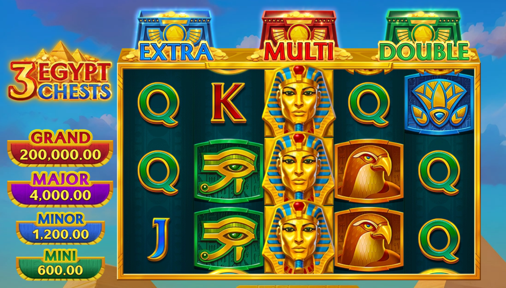 《3埃及寶盒-集鴻運》是一款以古埃及法老、金字塔與神秘符號為主題的電子遊戲,讓玩家彷彿置身於沙漠中的寶藏探險之旅,追尋千年未解的財富秘密。