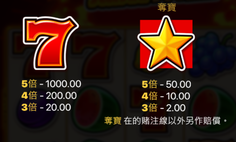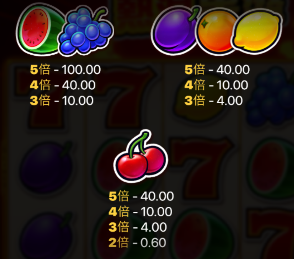 當然,水果符號仍然是這款遊戲的靈魂,無論是西瓜、葡萄、檸檬還是櫻桃,每種水果都有對應的獎勵倍數,尤其是西瓜與葡萄的五連線,最高可達100倍獎金。這讓人覺得,經典的水果機不只是運氣遊戲,更是一場簡單又令人上癮的財富挑戰,讓玩家不斷追尋更高額的中獎機率。