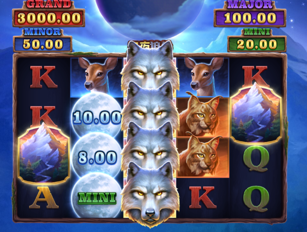 神秘狼群與荒野生物圖騰般的狼、山貓與鹿等野生動物象徵幸運降臨,帶來高額獎勵。