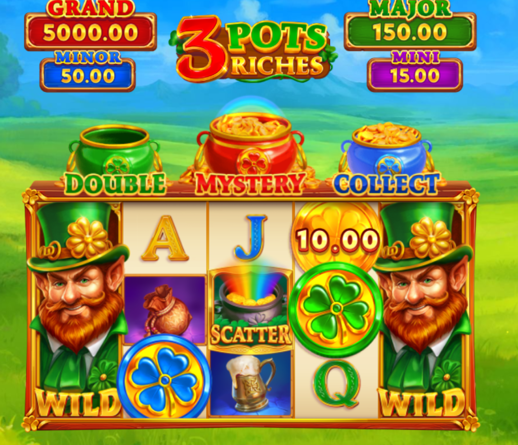 當四葉草金幣出現在捲軸上時,它將隨機啟動三大獎池功能:綠色的DOUBLE、紅色的MYSTERY、以及藍色的COLLECT,這三種不同的財富鍋,分別帶來不同的驚喜。