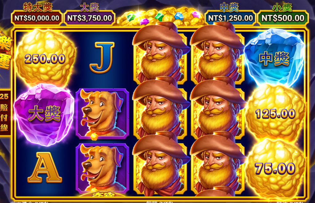 遊戲的背景設定在金礦世界,玩家將會跟隨勇敢的淘金者,深入神秘的金礦洞窟,尋找藏匿在其中的無盡財富。在這樣的環境下,遊戲的符號設計充滿了金礦和冒險的元素,包括閃閃發光的黃金、寶石以及英勇的淘金者和忠實的狗夥伴,每一個符號都不僅是裝飾,更帶有獨特的遊戲機制和獎勳。百搭符號是遊戲的一大亮點。