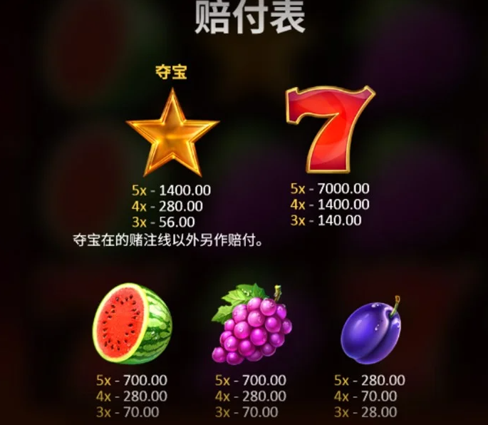 遊戲畫面極具懷舊風格,標誌性的西瓜、葡萄、檸檬、梅果等鮮豔水果符號,搭配閃耀金光的紅色7與金色星星,營造出濃厚的經典老虎機氛圍。我認為這款遊戲的魅力在於其純粹的轉軸機制,只需簡單轉動,即可期待高額獎金的降臨,尤其是當紅色7符號連線時,更能觸發最高賠率,一舉贏取豐厚獎金。