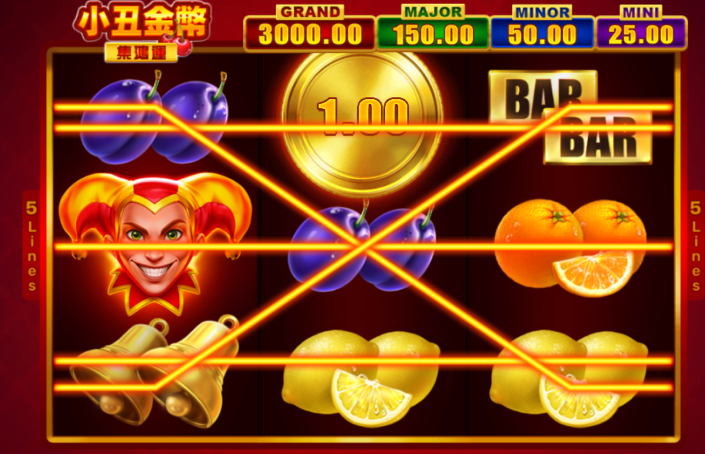 遊戲圖像鮮豔亮麗,金幣、幸運小丑、BAR標誌、鐘鈴與多種水果圖案,讓每一次旋轉都充滿期待。透過金幣機制,玩家有機會觸發四種累積獎金(Grand、Major、Minor、Mini),最高可贏取3000倍大獎!經典的Joker Wild符號能取代其他圖案,增加中獎機率。