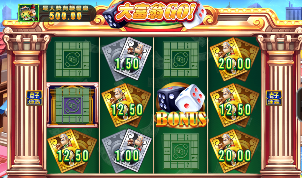 RK5電子推出的《大富翁GO!》是一款以經典桌遊大富翁為靈感的老虎機,讓玩家在金光閃閃的富豪世界中擲骰前進,體驗滿滿的財富感。我覺得這款遊戲的視覺設計相當吸引人,從華麗的金幣、鈔票、豪宅元素,到精緻的骰子符號,讓人感受到滿滿的財富氛圍,彷彿置身於商業大亨的世界。