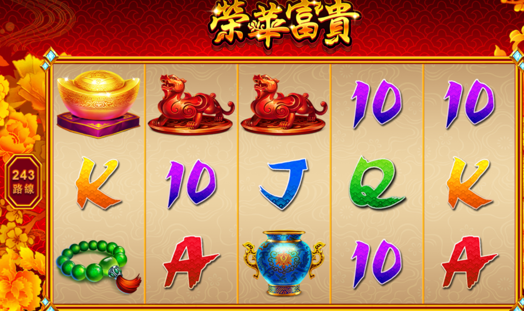 RK5電子的《榮華富貴》是一款充滿東方吉祥元素的經典老虎機遊戲,畫面以華麗的紅金色調為主,展現出尊貴與財運的象徵。遊戲的背景裝飾以精緻的金邊與傳統紋樣點綴,營造出喜氣洋洋的氛圍,吸引玩家沉浸在滿滿的財富能量之中。