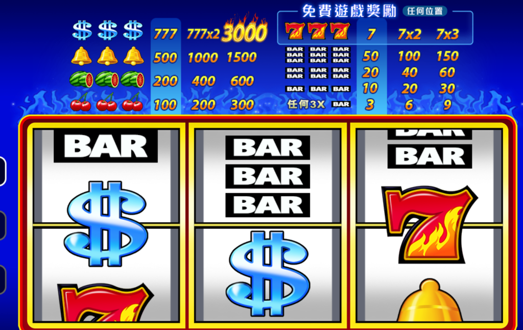 RK5電子的《777》是一款經典又充滿刺激感的老虎機遊戲,整體視覺設計採用了濃厚的復古風格,搭配藍色火焰背景,營造出熱血沸騰的氛圍。轉軸上的符號充滿熟悉感,從傳統的BAR標誌到火焰紅色777,都帶有濃濃的街機元素,讓人回憶起老式拉霸機的純粹樂趣。