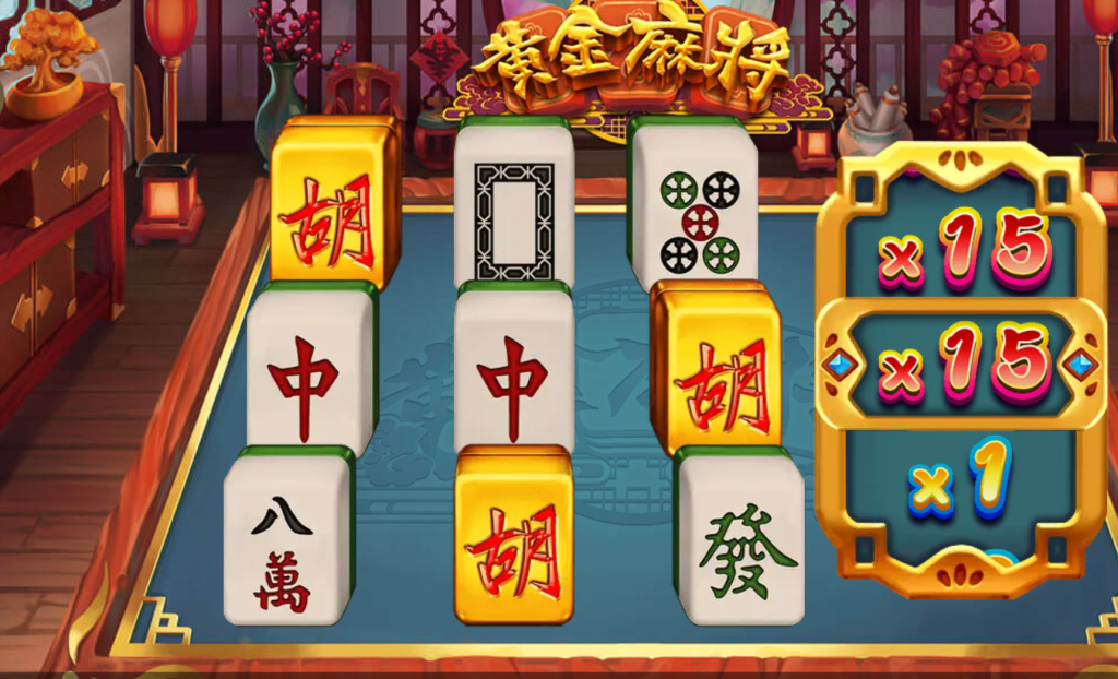 《黃金麻將》的亮點之一,就是右側的乘數機制,遊戲畫面中可見到x15、x15、x1的倍數獎勵,代表著每次旋轉都有機會大幅提升最終獎金。這種機制讓遊戲變得更加刺激,玩家不僅要期待胡牌,還能透過倍數累積獲得更高的報酬。