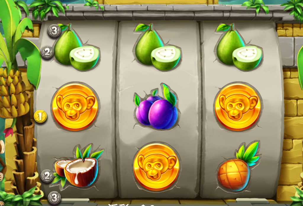 遊戲中的圖示設計十分可愛,包括芭樂、椰子、李子、鳳梨等各種熱帶水果,搭配金色猴子頭像金幣,讓每一次旋轉都像在熱帶島嶼裡尋寶。我覺得這種視覺搭配讓人放鬆又有趣,尤其是當三個猴子金幣排成一線時,那瞬間真的會想笑出來。