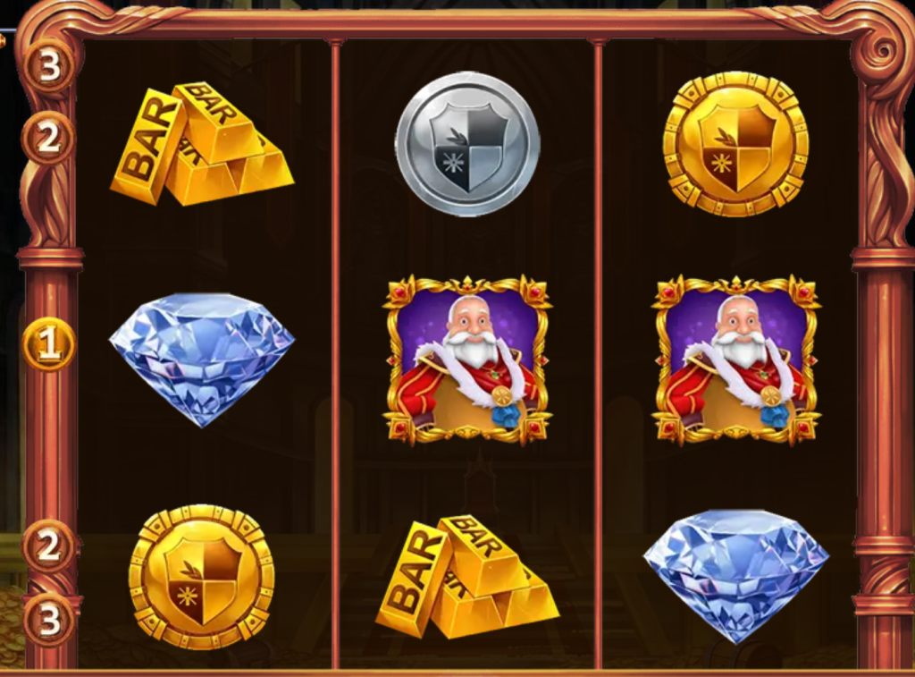 福星電子《國王的秘寶》是一款充滿中古奇幻風格的經典老虎機遊戲。遊戲畫面彷彿置身於古老皇宮寶藏室,背景以厚重的紅木裝飾和金色邊框襯托出尊貴感。轉盤上各種象徵財富與權力的圖案,像是鑽石、金幣、金條和盾徽,無不散發出奢華的氣息。而最核心的角色,是畫面中那位滿臉和藹、身披紅袍的國王,象徵著權威與大獎的召喚。
