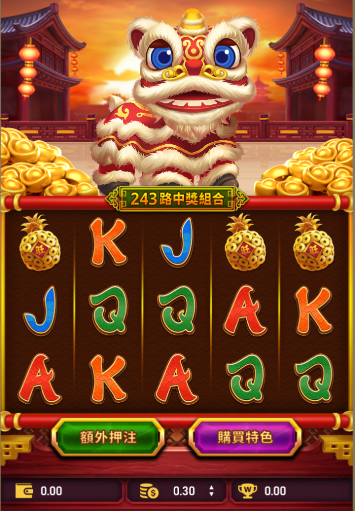 我認為這款遊戲最迷人的地方,不只是視覺上的紅金色系喜氣洋洋、鞭炮舞獅的動畫讓人感覺過年氣氛十足,而是它整個遊戲機制非常有層次。像是243線的中獎機制,就大大提升了連線的頻率,這讓人每轉一次都充滿期待。每次看到金鳳梨、金魚、元寶連成一線的時候,我心裡都會默默想:「這一局可能要起飛了」。