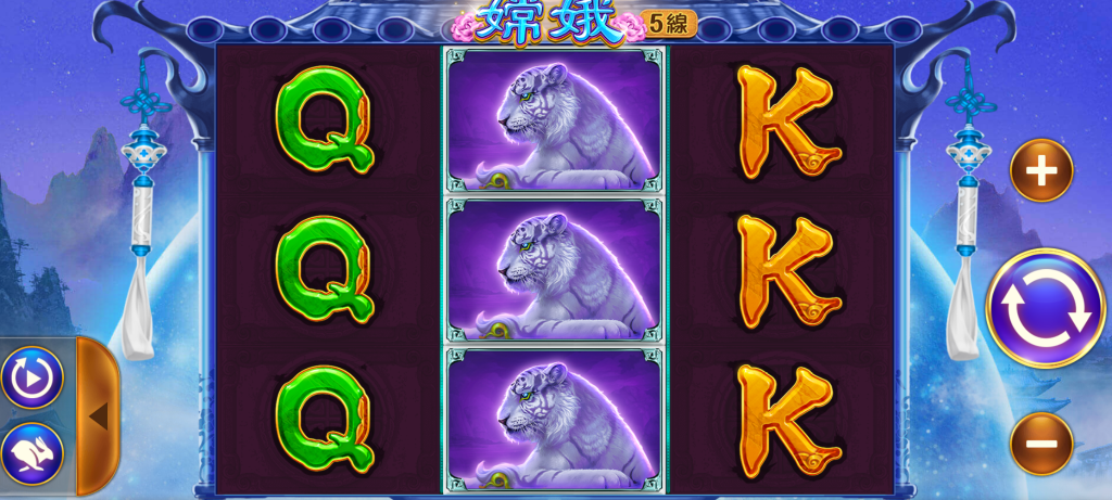 BE電子-《嫦娥》是一款以東方仙境美學為基底、搭配低線高爆設計的拉霸遊戲。整體風格充滿柔美的月色與神話意象,畫面上不但展現出嫦娥仙子婀娜身影,還融合了靈獸白虎與精緻的古典紋飾,讓人彷彿置身於寧靜的月宮之中,每一次轉動都是一段唯美神話的延伸。