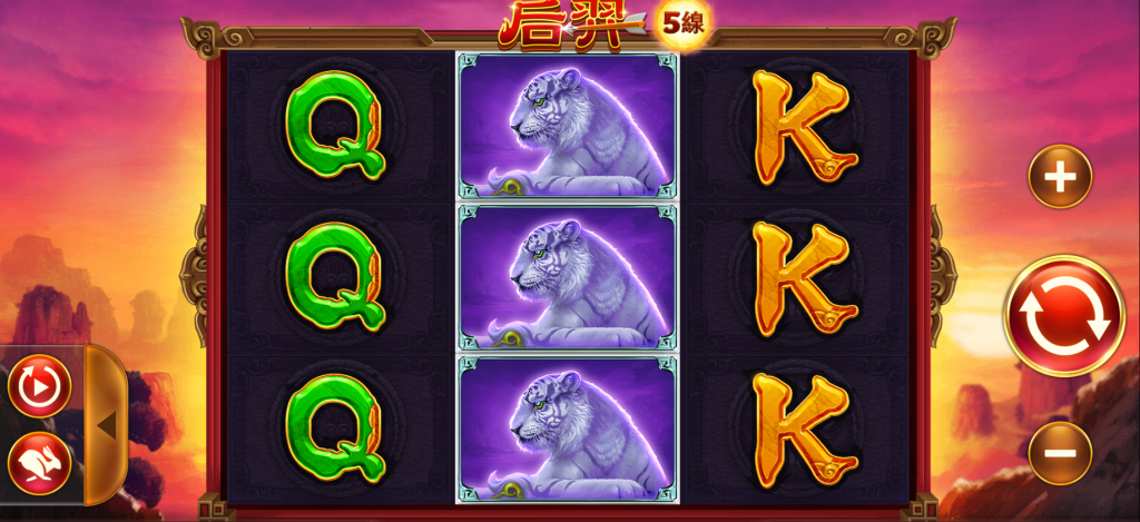 在《后羿》這款以神話英雄為主題的拉霸遊戲中,玩家能感受到濃厚的東方武俠氛圍。我覺得這款遊戲最吸引人的地方在於它用視覺敘事塑造出強烈的史詩感,尤其是中央轉輪上霸氣十足的白虎與后羿形象,讓人一轉眼就能沉浸其中。