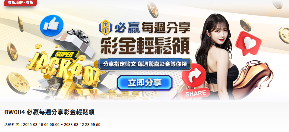 - 超簡單門檻,不用中獎也能領分享貼文對你來說只是幾秒鐘的事情,卻能換來一筆可用彩金,這種「操作0風險、回饋立即有」的活動,其實就是最穩定的回血機制。