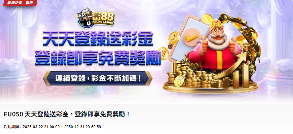 富88娛樂城連續登入禮:天天領最高88元彩金