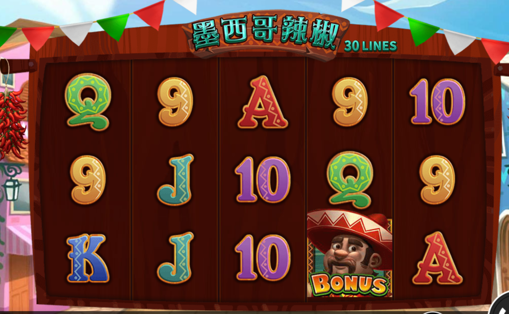 RSG電子-《墨西哥辣椒》是一款充滿拉丁節奏與街頭歡樂氣息的老虎機遊戲,整體畫面色彩鮮明、節慶感十足。畫面上可以看到紅白綠三色旗幟飄揚,背景則是熱鬧的墨西哥市集場景,讓人彷彿置身於香料與音樂交織的熱情國度。