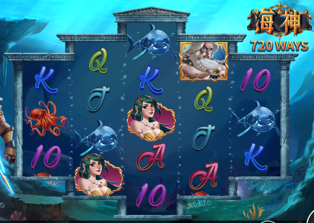 遊戲最大亮點在於「720種連線方式」的設計,讓玩家能在不同位置都觸發高頻中獎,不受傳統賠線限制。圖示部分包含了威嚴十足的海神主角、性感海洋女妖、微笑鯊魚與章魚等角色,每一個符號都極具特色且充滿海底神話氣息。