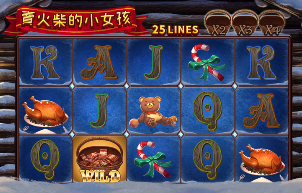 RSG電子-《賣火柴的小女孩》是一款充滿溫馨冬日氛圍的機台遊戲,整體畫面以木屋與雪景為背景,搭配藍色霜寒感的轉盤與木質字母符號,成功營造出一種帶有故事感的童話氛圍。無論是烤火雞、糖果棒、泰迪熊,還是寫有「WILD」的火柴禮物籃,每個元素都像是從溫暖夢境中走出來。
