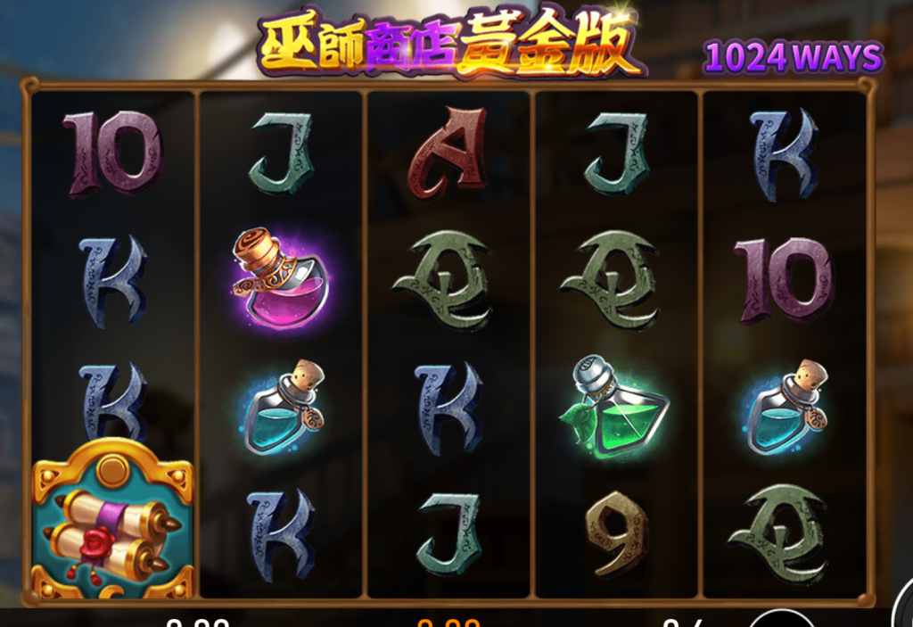 RSG電子-《巫師商店黃金版》是一款充滿魔法風格與神秘氛圍的老虎機作品,整體畫面以深色調為基底,搭配閃耀光暈的藥水瓶、魔法卷軸與奇異符文,營造出一間藏在夜晚市集深處的魔法小店。從視覺呈現上就能感受到濃濃的奇幻感,帶玩家踏入一場充滿魔力與金幣的冒險。