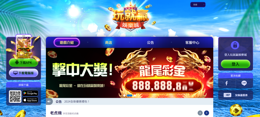 平台支援多種載具進入:包括APK手機版本與Windows電腦版下載,亦提供QR Code掃描直達安裝頁。值得注意的是,「玩就贏娛樂城」採用與LINE社群串聯的登入模式,無需額外創建帳號,透過社群登入即能快速進入平台,這對於習慣使用LINE的台灣用戶來說可說是便利性上的加分設計。