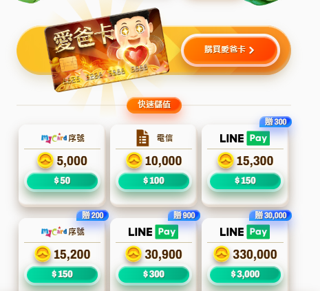 金爸爸娛樂城在儲值體系上的設計可說是極具彈性與多元,從新手到高端用戶,從現金儲值到電子支付,無一不包。若你偏好便利、安全且有高額回饋,LINE Pay絕對是首選;若你手邊只有現金或不便綁卡,MyCard序號與電信代收提供了實體與虛擬兼容的方案;而若你是長期投入型玩家,則可以考慮信用卡與銀行轉帳的高額穩定路徑。