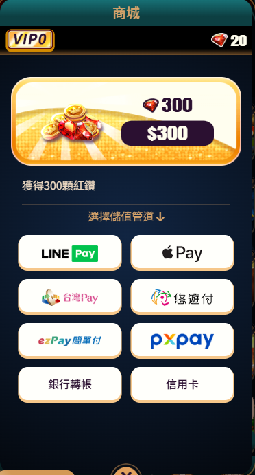 從官方商城畫面可見,紅鑽娛樂城支援多種主流付款方式,儲值門檻親民,介面簡單明瞭。當玩家欲購買紅鑽時,僅需點選金額後挑選付款方式,即可完成金流動作。