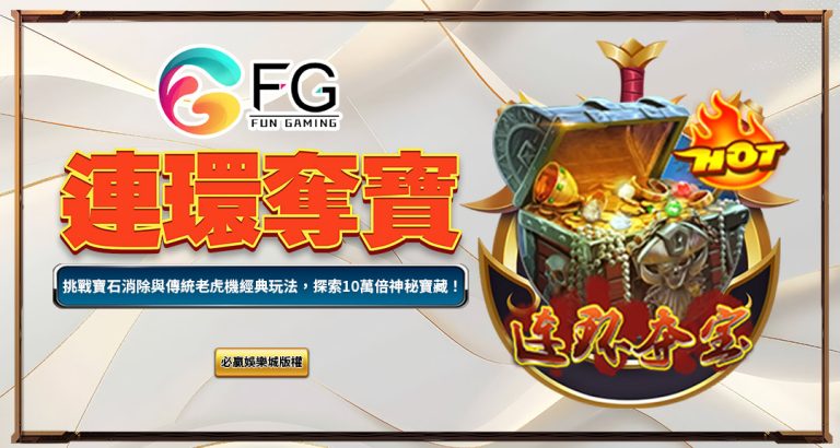 FG電子-連環奪寶遊戲介紹 FG電子推出的《連環奪寶》是一款融合東方古風與寶箱探索的趣味型遊戲,整體畫面以宮殿場景為主,中央…